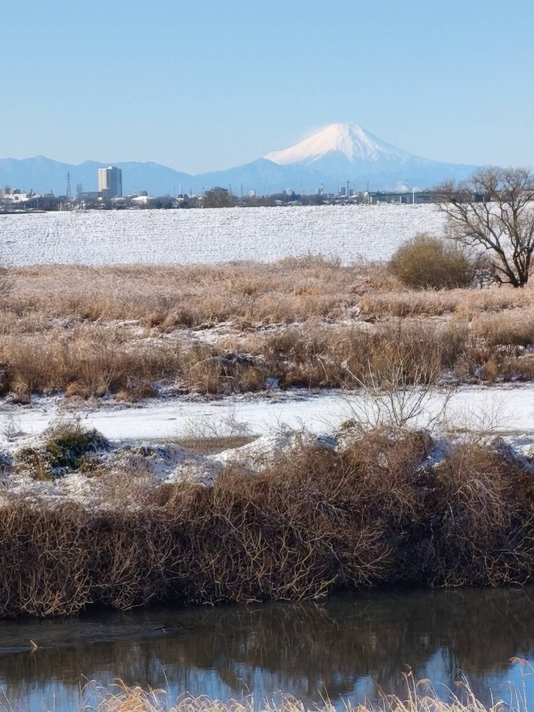 江戸川から見た1月3日の朝日と富士山です。